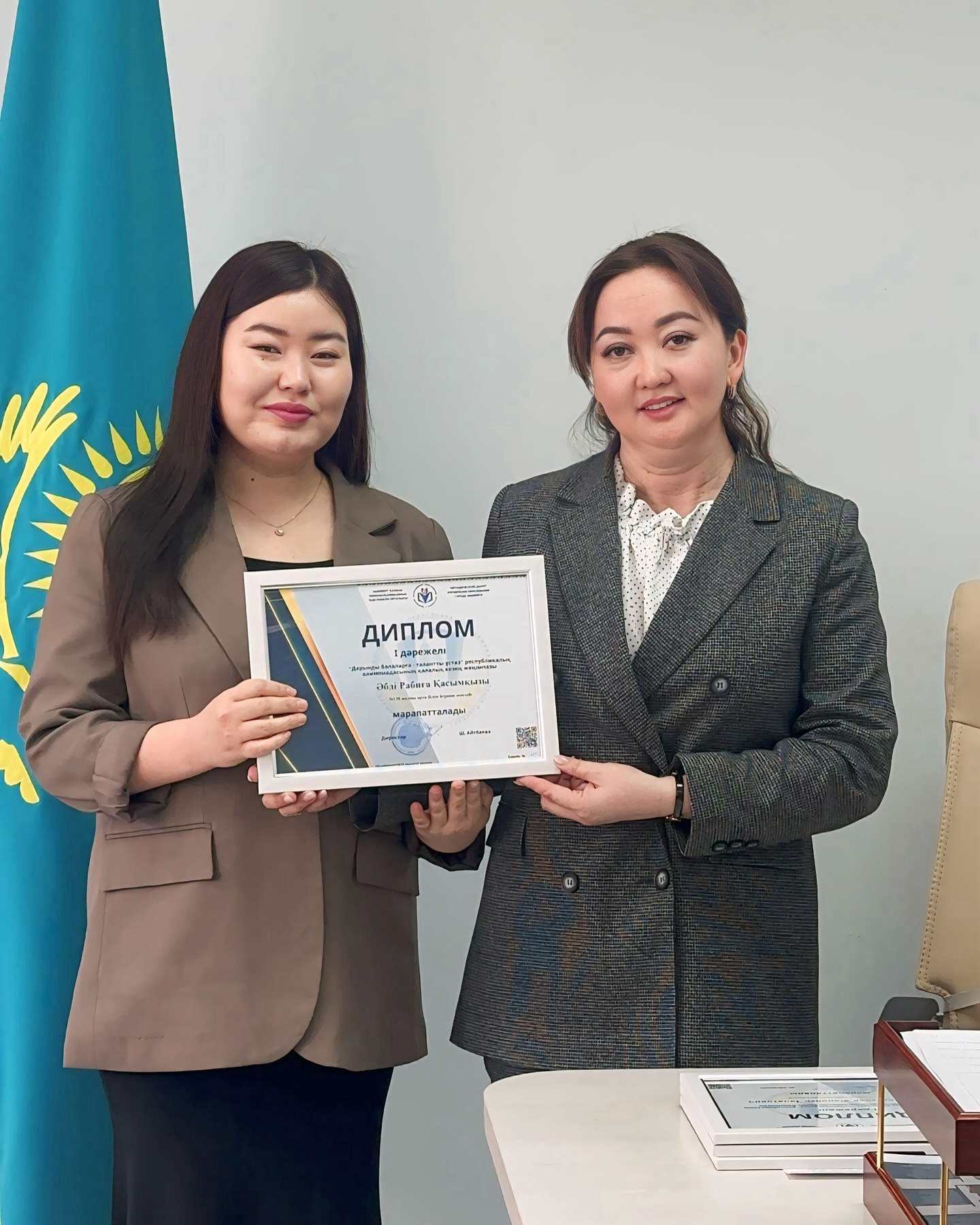 От всей души поздравляем нашего учителя Абды Рабигу Касымовну, занявшую I место по английскому языку в республиканской олимпиаде “одаренным детям-талантливый учитель” по городу Шымкент и получившую путевку на республиканский этап! Эта победа-яркое проявление кропотливого труда, поисков и профессионального мастерства нашего учителя. Директор Методического центра Айтбаева Шолпан Сапарбаевна специально поздравила победителей городского этапа и пожелала удачи.